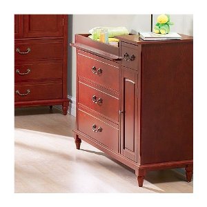 So, we did get the matching set of the Armoire and the Change table. I also anguished over the color of the wood stain. Was the cherry too dark? I knew I didn’t want the really light colored, blond wood, but did I want the medium colored wood, and which shade. I thought that I found one that I liked. It was called a walnut and was a dark honey color, but we couldn’t find the matching pieces that went with the crib. I finally went with these three pieces, and although I didn’t really like the type of crib (the back side is taller than the front side – it’s not very traditional, and I was looking for something more traditional as first) at first. I really like it now, and can’t wait to get the whole thing set up in nursery.