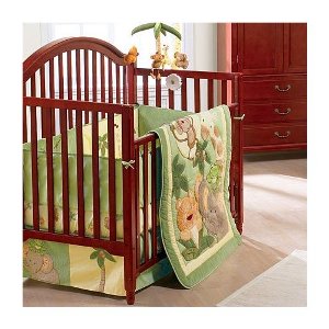 Well, I have this crib in it’s box, down in my garage.  Doesn’t it look nice? Ignore the crib bedding, ’cause we are getting that Frog and Bug set that I showed you in the last post.